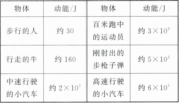 。(4)下表是一些物体的动能大小,分析表中数据,请你提出一个可以探究的物理问题: