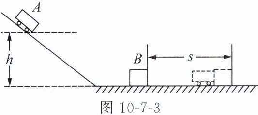 利用如图10-7-3所示的实验装置探究动能大小的影响因素。实验时让小车A从斜面上由静止滑下,小车A运动到水平面上后将物体B推出一段距离。