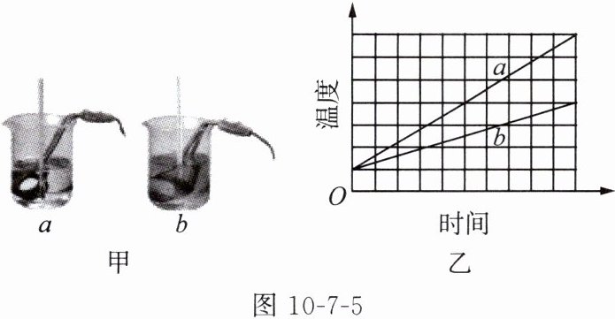 4. (2024·湖北中考)如图10-7-5甲所示,利用相同规格的电加热器加热等质量的a、b两种液体,得到的其温度随时间变化的关系图像如图10-7-5乙所示,分析可知(