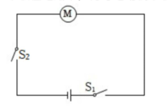 10. 高速列车给人们出行带来了便利,但安全要求也更加严格。乘坐高速列车时需同时进行身份证扫描(其控制开关为 $ S_1 $)和人脸识别(其控制开关为 $ S_2 $),当两条信息相符合时,电动机转动使闸门打开,人才能通行。请你设计一个符合要求的电路图,画在如图 11-2-12 所示的虚线框内。