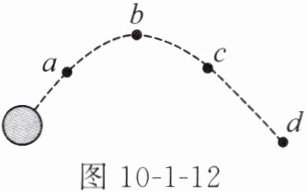 9. 体育课上小堂进行传接排球训练,他将排球斜向上抛出,排球的运动轨迹如图10-1-12所示,a、b、c、d为轨迹上的点,其中a、c两点的高度相同。不计空气阻力,则排球在a点的机械能