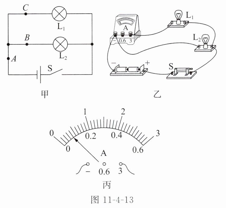 (选填“B”或“C”)处的电流。闭合开关 S 后,电流表的示数如图 11 - 4 - 13 丙所示,为0.4