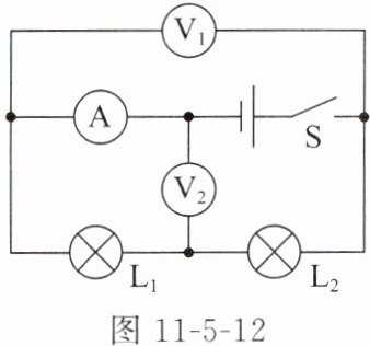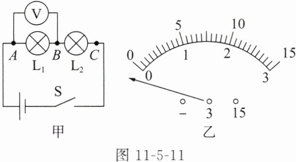 。(2)小致根据图11-5-11甲连接好实物电路,闭合开关S后,发现电压表的示数为零,若只有$L_1$或$L_2$中的一处发生故障,则故障可能是
