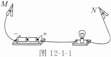 1. 小梦在电学实验课上,把文具盒里的部分物品分别接入如图 12-1-1 所示的$M$、$N$两点之间,其中能使小灯泡发光的是(