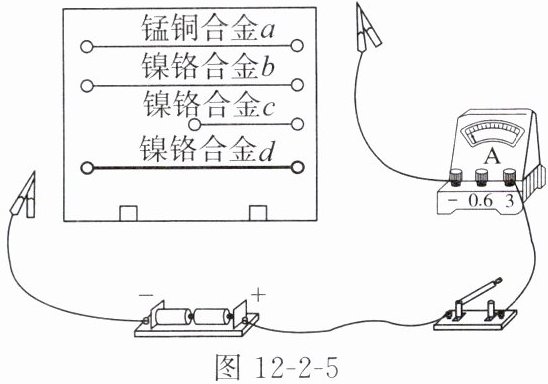 8. 图 12 - 2 - 5 是“探究影响导体电阻大小的因素”的实验装置图,实验中分别把$a$、$b$、$c$、$d$四根导线接入电路中,其中$a$、$b$、$d$的长度相同,$a$、$b$、$c$的粗细相同。
