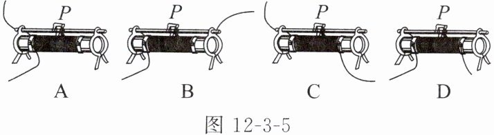 1. 图 12 - 3 - 5 是滑动变阻器接入电路的四种方式,其中,当滑动头 P 向左移动时,接入电路的电阻变大的是(