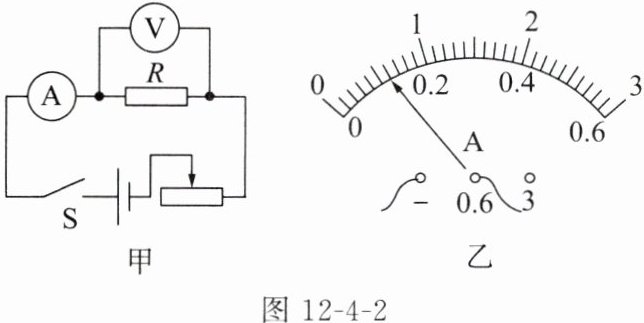。【进行实验】按电路图连接实物电路,电源由两节新干电池组成,滑动变阻器的规格为“20Ω 1A”。接好电路后,闭合开关S,电流表的指针位置如图12-4-1乙所示,此时电流表的示数为