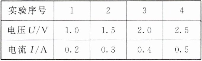 A。保持电阻R= 5Ω不变,移动滑动头P,测得的几组数据如下表所示。|实验序号|1|2|3|4|