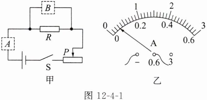 【设计实验】图12-4-1甲是该实验的电路图。请判断虚线框内的电表,A、B的符号分别是