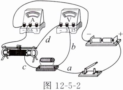 (选填“a”“b”“c”或“d”)。(3)纠正错误后,闭合开关,测得的几组数据如下表所示。第3次实验时电流表的示数如图12-5-3所示,为