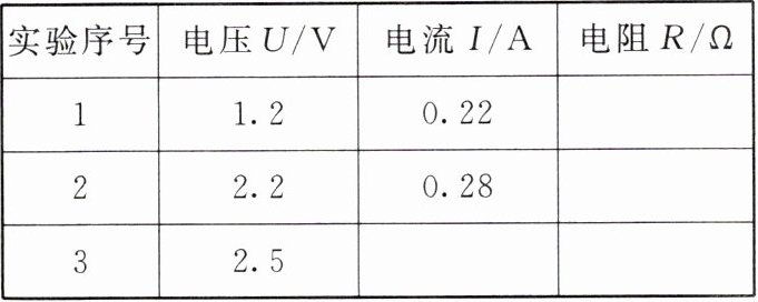 (3)排除电路故障后,闭合开关,移动滑动变阻器的滑动头,先后测量得到两组数据(如下表所示)。小冰要测量小灯泡正常发光时的电阻,接下来的操作是
