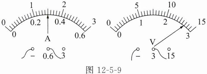 (2)实验中当把滑动变阻器的滑动头P置于某位置时,电流表和电压表的示数如图12-5-9所示,则此时电阻Rₓ=