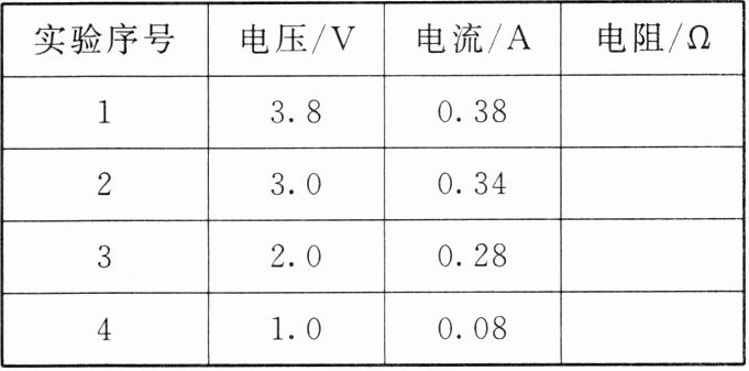6. 在“测量小灯泡的电阻”实验中,已知电源电压为4.5V,小灯泡上标有“3.8V”的字样。