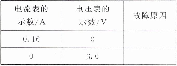 (2)小明正确地连好电路,闭合开关后,电流表、电压表的示数如下表所示,请你帮小明判断故障原因,并填在表格中。(故障发生在Rₓ处)