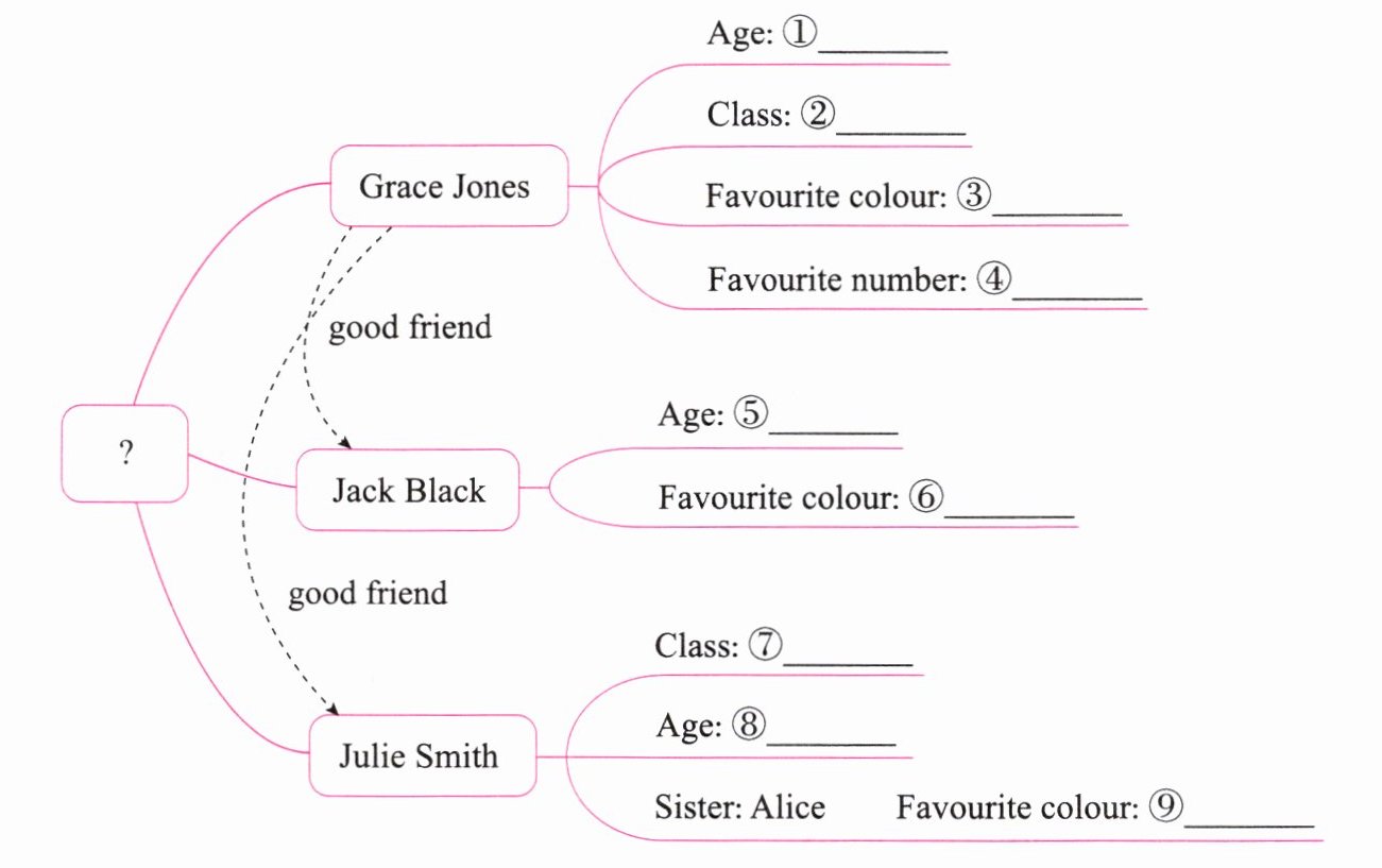 Julie Smith is my good friend too. She’s in my school. She’s in Class Three. She and I are of the same age(年龄). Look! That’s an orange jacket. It’s her sister Alice’s. Alice likes orange best. She has an orange cup and an orange telephone. Her telephone number is 189 - 3254.