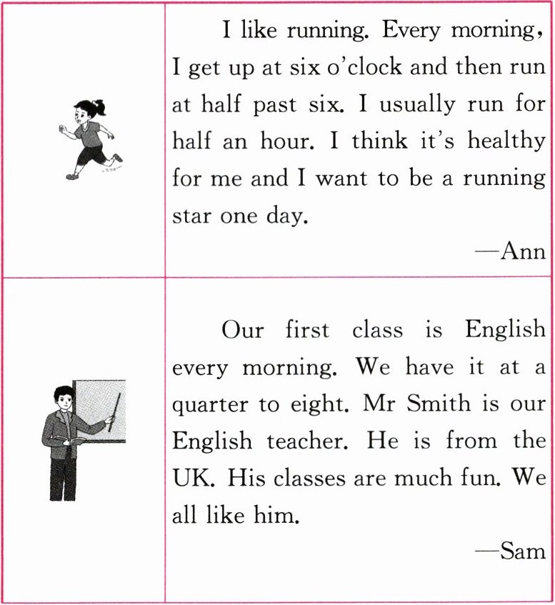 本文介绍了安每天早晨的跑步活动、萨姆对他的英语老师史密斯先生的评价、珍妮周末的读书生活和乔每周六晚上的聚会情况。36.B 37.D 38.A 39.C 40.A