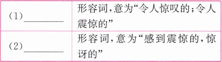 ||(2)|形容词,意为“感到震惊的,惊讶的”