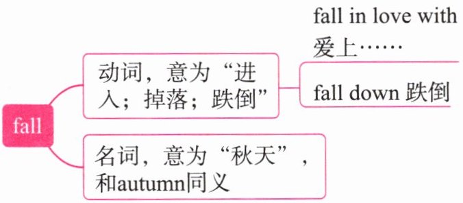 A[fall] --> B[动词,意为“进入;掉落;跌倒”]