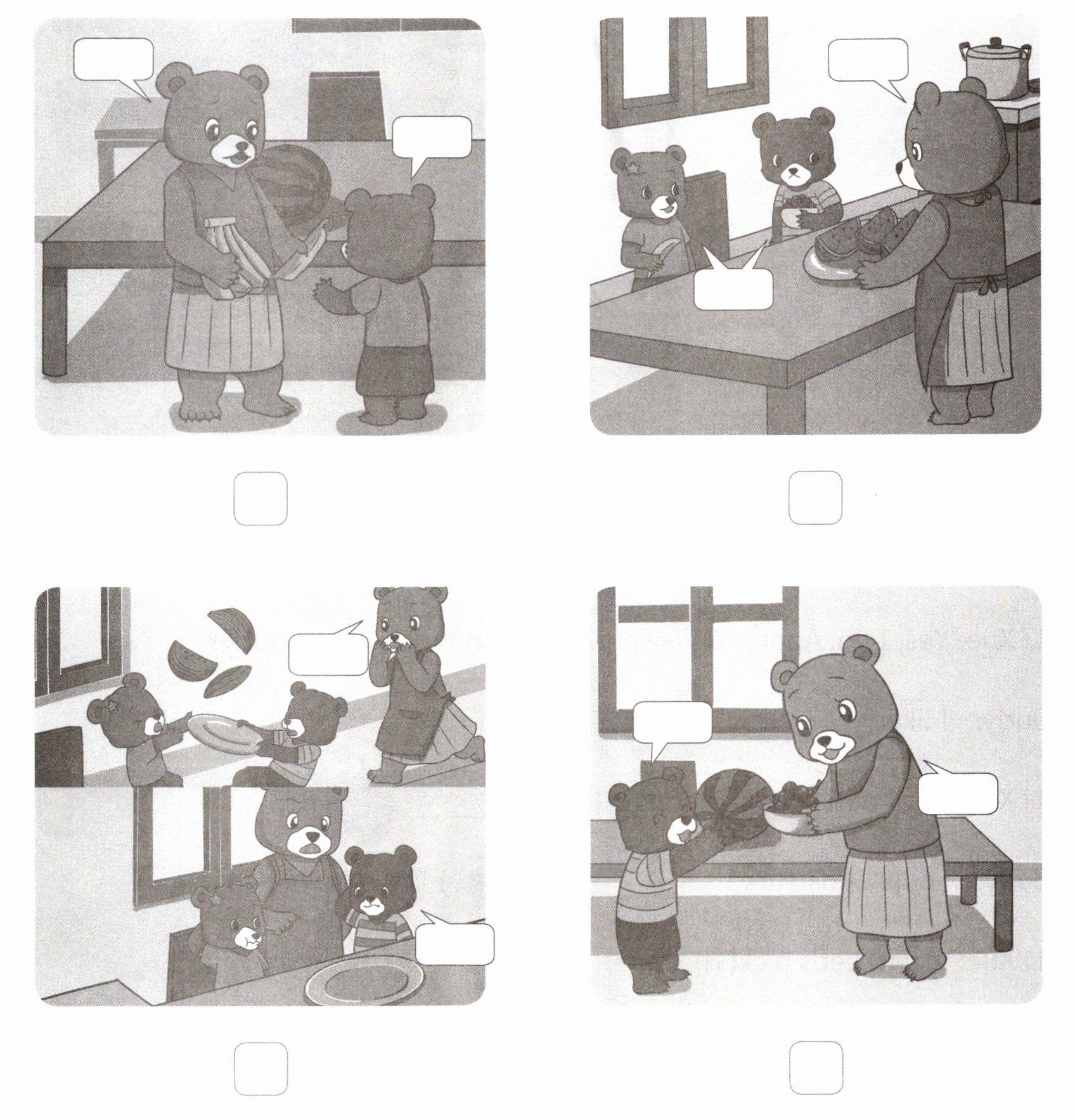 一、Listen and number. 小熊一家发生了什么?根据所听内容,给图片排序。