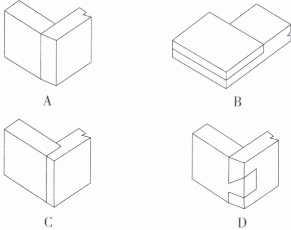D【解析】根据内容可知燕尾榫结构是“两块平板直角相接”“榫头做成梯台形”,根据两个特点得出答案为D。