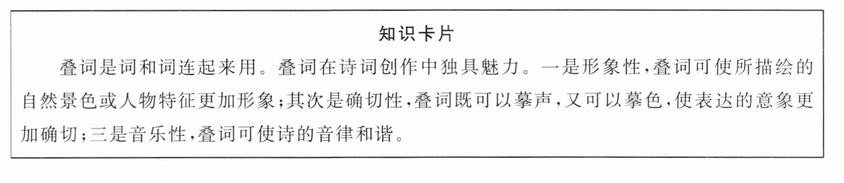 3. 根据诗歌内容和下面的知识卡片赏析“亭亭山上松,瑟瑟谷中风”中叠词的表达效果。