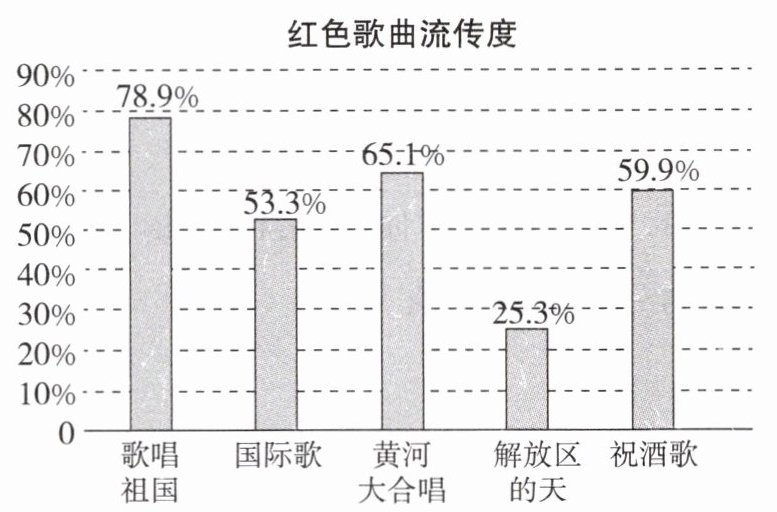 13. 下面是有关红色歌曲流传度的统计表。请整合下表信息,将下面的内容补充完整,要求表达简明、连贯、通顺。