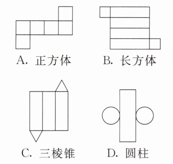 【例4】下面的展开图与图下方的立体图形名称不相符的是( )。