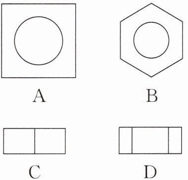 3. 如图所示的六角螺母,从上面看,得到的图形大致是( )。