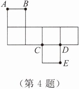 4. 下图是正方体的展开图。将其折叠成正方体后,距顶点D最远的点是(