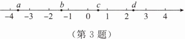 3. 数$a$,$b$,$c$,$d$在数轴上的对应点的位置如图所示,在这四个数中,绝对值最大的是(