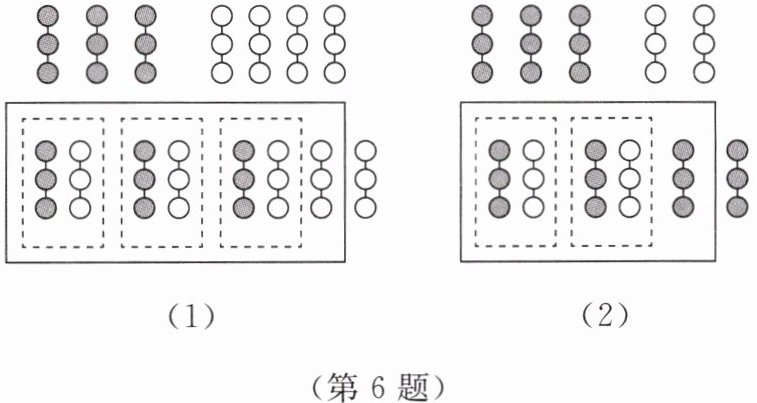 6. 《九章算术》中记载了利用算筹实施“正负术”的方法,图(1)表示的是计算 $(+3)+(-4)$ 的过程,按照这种方法,图(2)表示的过程应是在计算(