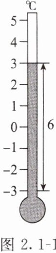 如图2.1-1,你能从温度计上看出$3^{\circ}C$比$-3^{\circ}C$高多少摄氏度吗?