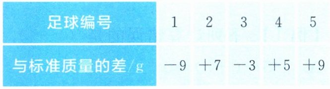 5. 检查5个足球的质量,把超过标准质量的克数记为正数,不足标准质量的克数记为负数,检查的结果见表2.1-1。