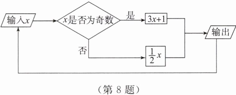 8. 有一个数值转换器,原理如图所示,若开始输入$x$的值是$5$,可发现第$1$次输出的值为$16$,第$2$次输出的值为$8$,第$3$次输出的值为$4$。依次继续下去,第$2025$次输出的值为(