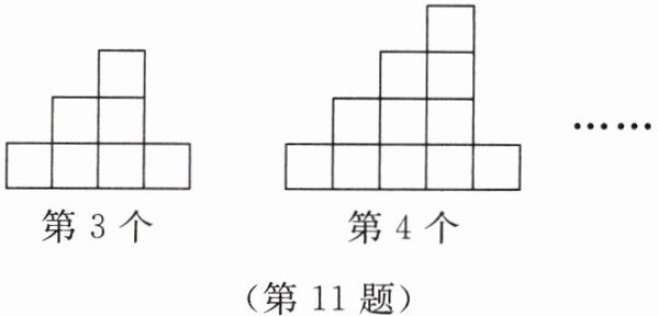 11. 如图,下列图案均是由长度相同的木棒按一定的规律拼搭而成,第 $ 1 $ 个图案需 $ 7 $ 根木棒,第 $ 2 $ 个图案需 $ 13 $ 根木棒,……依此规律,第 $ 5 $ 个图案需