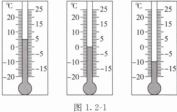 请读出图 1.2 - 1 中温度计的温度并用有理数表示出来.