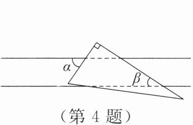 4. 如图,小明把一个直角三角尺放在两条平行的直线上,则$\angle \alpha + \angle \beta=$