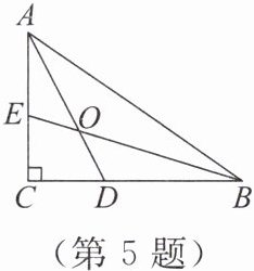 5. 如图,小琪在计算机上用“几何画板”画了一个$Rt\triangle ABC$,$\angle C = 90^{\circ}$,并画出了两个锐角的平分线$AD$,$BE及它们的交点O$。小琪发现,无论怎样变动$Rt\triangle ABC$的形状和大小,$\angle AOB$的度数都不变。则$\angle AOB$的度数为