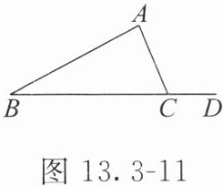 【例 2】如图 13.3 - 11,已知 D 是△ABC 的边 BC 延长线上一点,且满足∠A = 85°,∠B = 28°,则∠ACD = ( ).