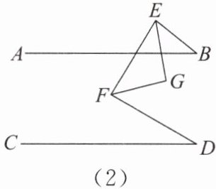 ②如图(2),F 为 AB,CD 之间一点,连接 EF,DF,EG 平分∠BEF,FG 平分∠EFD,∠D = 30°,探究∠B 与∠G 之间的数量关系.