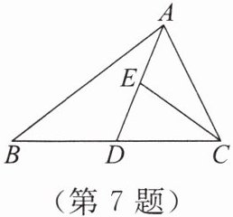 7. 如图,在△ABC 中,D,E 分别为边 BC,AD 的中点. 若$ S_{△AEC}= 2,则 S_{△ABC}= $