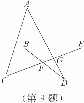 9. 如图,∠A+∠B+∠C+∠D+∠E=
