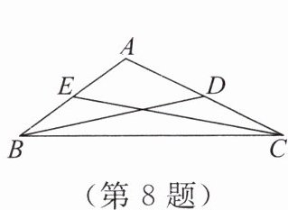 8. 如图,在△ABC 中,若 CD= $\frac{1}{3}$BC= 4,BE= $\frac{1}{4}$BC,BD,CE 是△ABC 的两条中线,则△ABC 的周长是