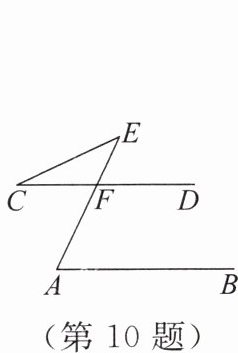 10. 如图,AB//CD,AE 交 CD 于点 F. 若∠A= 65°,∠C= 25°,则∠E=