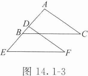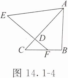 ● 跟踪练习 2 如图 14.1 - 4,△ADE≌△ABC,点 D 在 AC 上,延长 ED 交 BC 于点 F. 若∠EAC = 40°,则∠BFD =