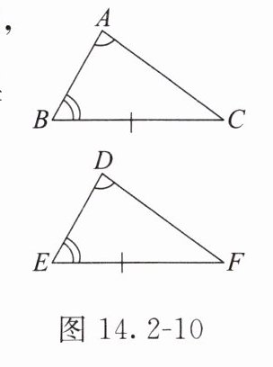 数学语言:如图14.2-10,在△ABC和△DEF中,如果