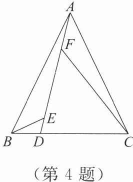 4. 如图,在等腰三角形ABC中,AB = AC,AB>BC,点D在边BC上,且DC = 3BD,点E,F在线段AD上,满足∠BED = ∠CFD = ∠BAC。若S△ABC = 24,则S△ABE + S△CDF = ____