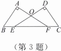 3. 如图,∠A = ∠D = 90°,点B,E,F,C在同一条直线上,AB = CD,BE = CF,求证∠B = ∠C。