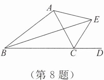 8. 如图,$\angle ACD是\triangle ABC$的外角,$\angle BEC = 40^{\circ}$,$\angle ABC和\angle ACD的平分线相交于点E$,连接$AE$,则$\angle CAE= $