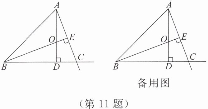 11. 如图,$\triangle ABC的两条高AD与BE相交于点O$,$AD = BD$,$AC = 8$.
